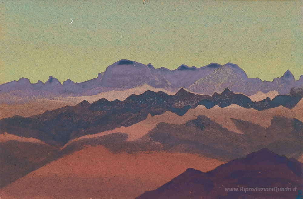 Ti offriamo una riproduzione artigianale su tela dell'opera famosa 'Himalaya. Quasi Sandahpu.' di Nicholas Roerich, dal Museo delle Riproduzioni.