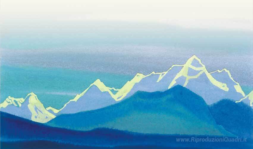 Ti offriamo una riproduzione artigianale su tela dell'opera famosa 'Himalaya. Soleggiato contorno delle montagne.' di Nicholas Roerich, dal Museo delle Riproduzioni.