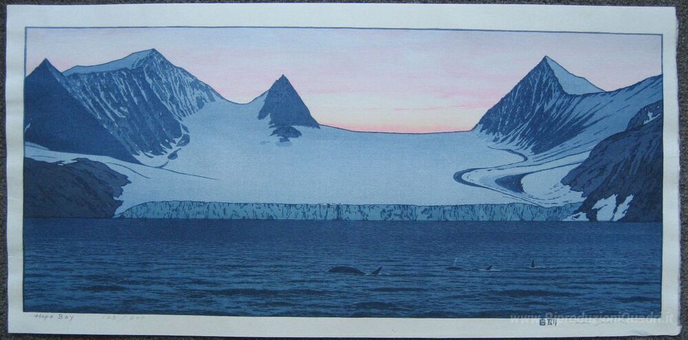 Ti offriamo una riproduzione artigianale su tela dell'opera famosa 'Hope Bay' di Toshi Yoshida, dal Museo delle Riproduzioni.