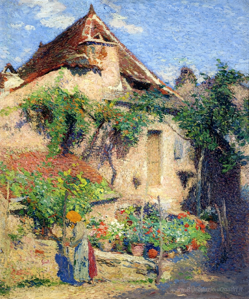 Ti offriamo una riproduzione artigianale su tela dell'opera famosa 'House and Garden a Saint-Cirq-Lapopie' di Henri Martin, dal Museo delle Riproduzioni.