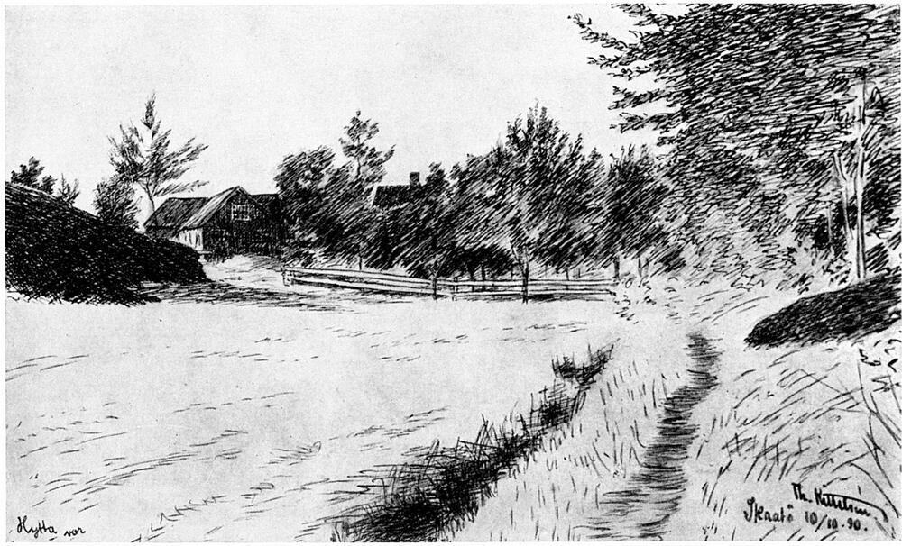 Ti offriamo una riproduzione artigianale su tela dell'opera famosa 'Hytta Vaar Paa Staatoey' di Theodor Severin Kittelsen, dal Museo delle Riproduzioni.
