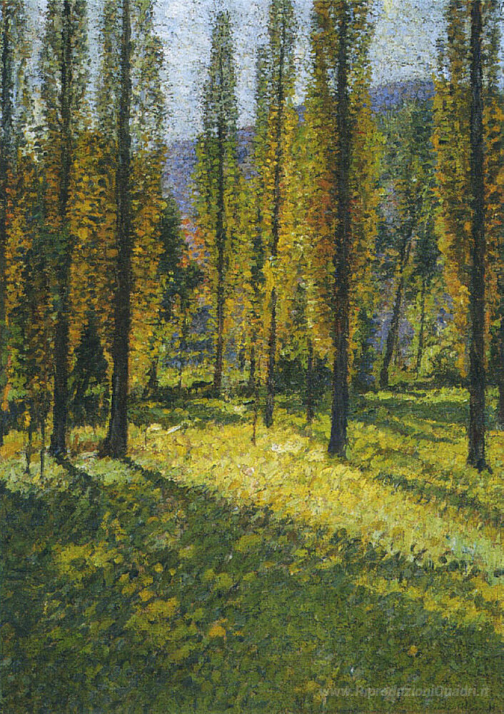 Ti offriamo una riproduzione artigianale su tela dell'opera famosa 'I Pioppi' di Henri Martin, dal Museo delle Riproduzioni.