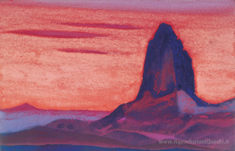 Ti offriamo una riproduzione artigianale su tela dell'opera famosa 'I templi rupestri' di Nicholas Roerich, dal Museo delle Riproduzioni.