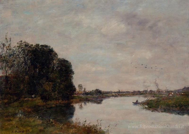 Ti offriamo una riproduzione artigianale su tela dell'opera famosa 'I Toques a Saint-Arnoult' di Eugene Boudin, dal Museo delle Riproduzioni.