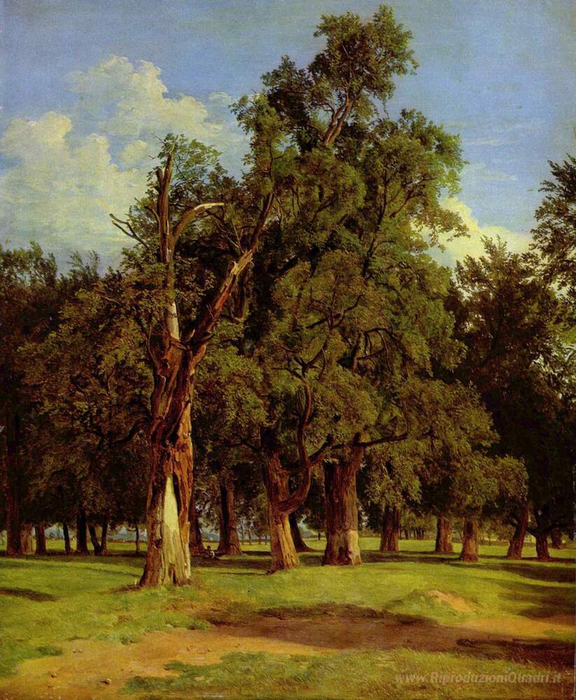 Ti offriamo una riproduzione artigianale su tela dell'opera famosa 'I vecchi olmi in Prater' di Ferdinand Georg Waldmüller, dal Museo delle Riproduzioni.
