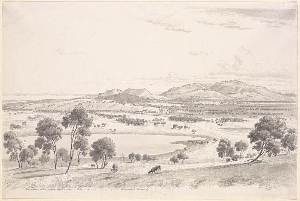 Ti offriamo una riproduzione artigianale su tela dell'opera famosa 'I Warrion Hills visto dalla collina di Robertson vicino Colac e ' di Eugene von Guerard, dal Museo delle Riproduzioni.