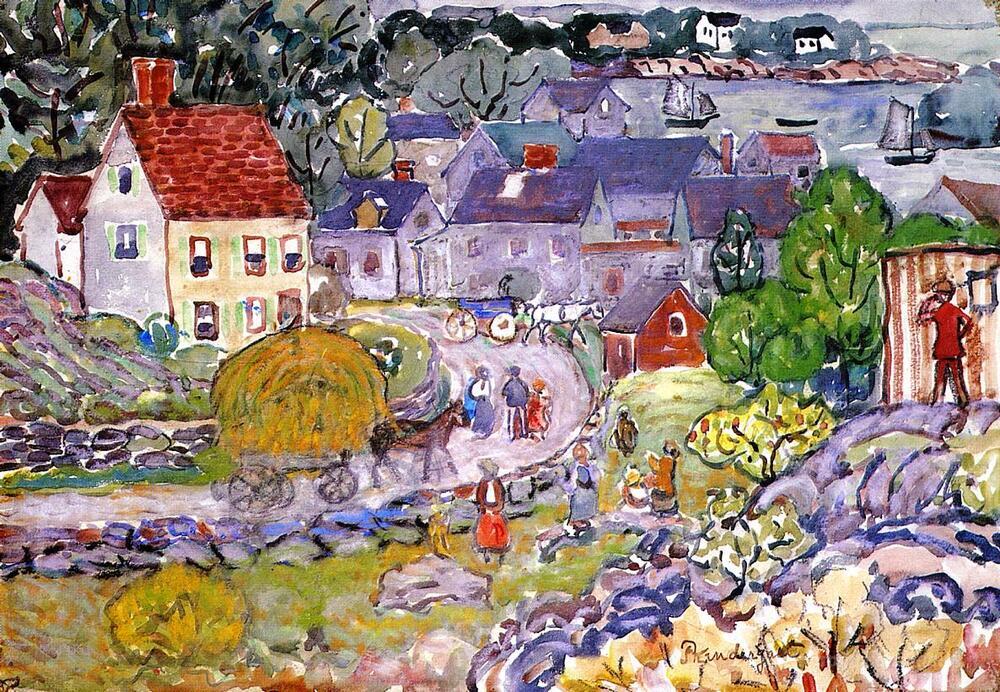 Ti offriamo una riproduzione artigianale su tela dell'opera famosa 'Il carro di fieno' di Maurice Prendergast, dal Museo delle Riproduzioni.