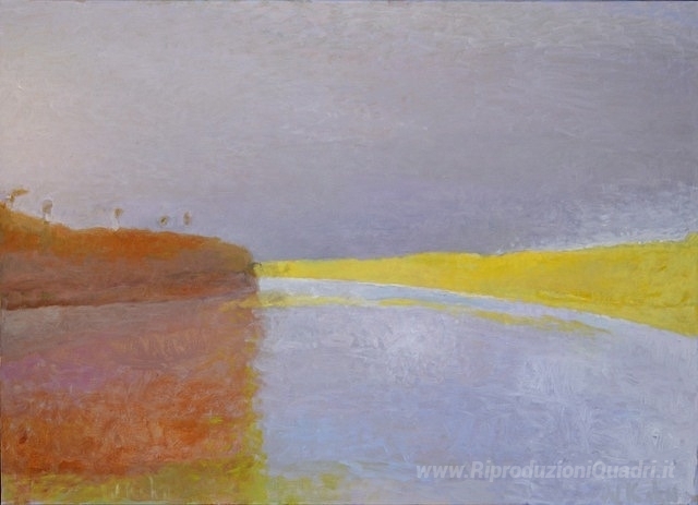 Ti offriamo una riproduzione artigianale su tela dell'opera famosa 'Il fiume in una giornata grigia' di Wolf Kahn, dal Museo delle Riproduzioni.