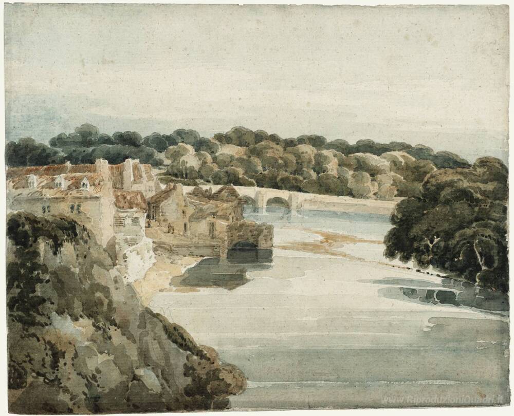 Ti offriamo una riproduzione artigianale su tela dell'opera famosa 'Il fiume Tweed vicino a Kelso' di Thomas Girtin, dal Museo delle Riproduzioni.