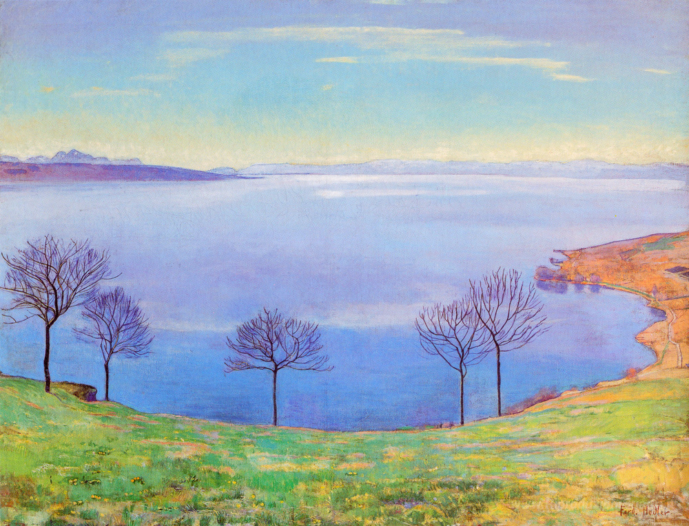 Ti offriamo una riproduzione artigianale su tela dell'opera famosa 'Il Lago di Ginevra da Chexbres' di Ferdinand Hodler, dal Museo delle Riproduzioni.