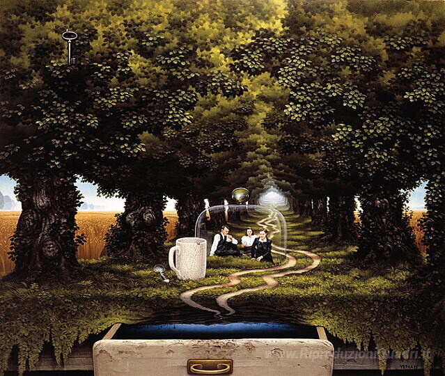 Benvenuti nel mondo affascinante dei dipinti a olio, dove l’arte si fonde con la bellezza italiana. Oggi vi presentiamo Il luogo di origine, un'opera straordinaria dell’artista polacco Jacek Yerka, rinomato per il suo stile surrealista e onirico. Le sue opere sono caratterizzate da dettagli incredibili e da una palette cromatica vibrante, che trasmette emozioni profonde e invita lo spettatore a esplorare mondi fantastici.