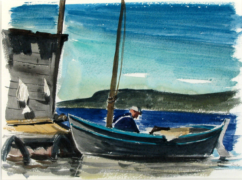 Ti offriamo una riproduzione artigianale su tela dell'opera famosa 'Il Pescatore' di Jack Bush, dal Museo delle Riproduzioni.
