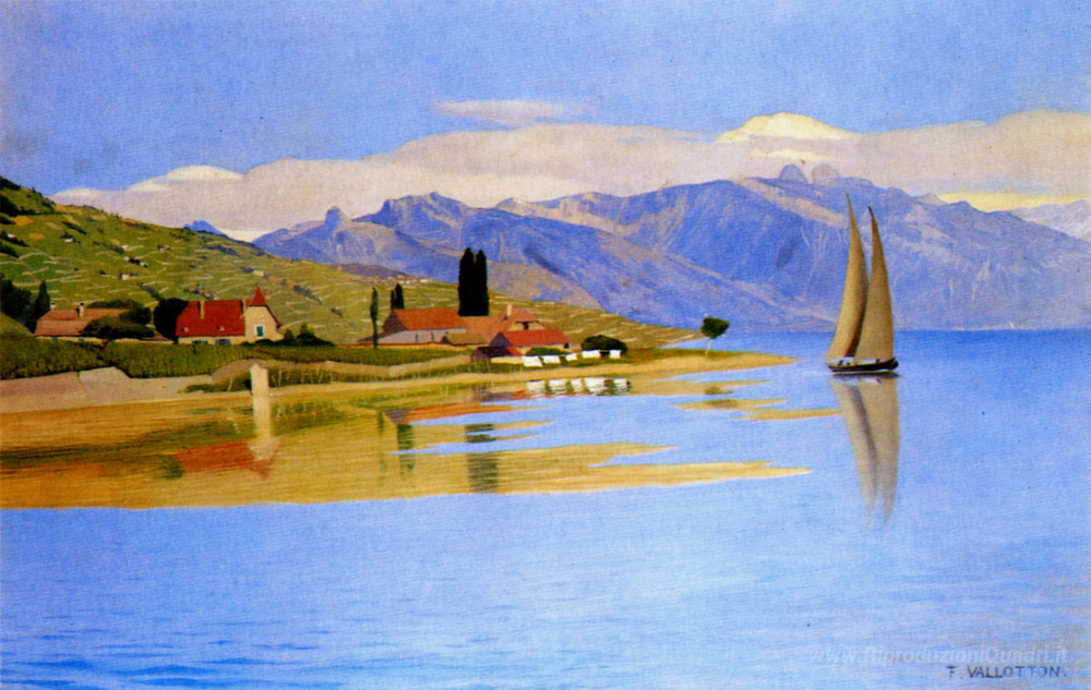 Ti offriamo una riproduzione artigianale su tela dell'opera famosa 'Il porto di Pully' di Felix Vallotton , dal Museo delle Riproduzioni.