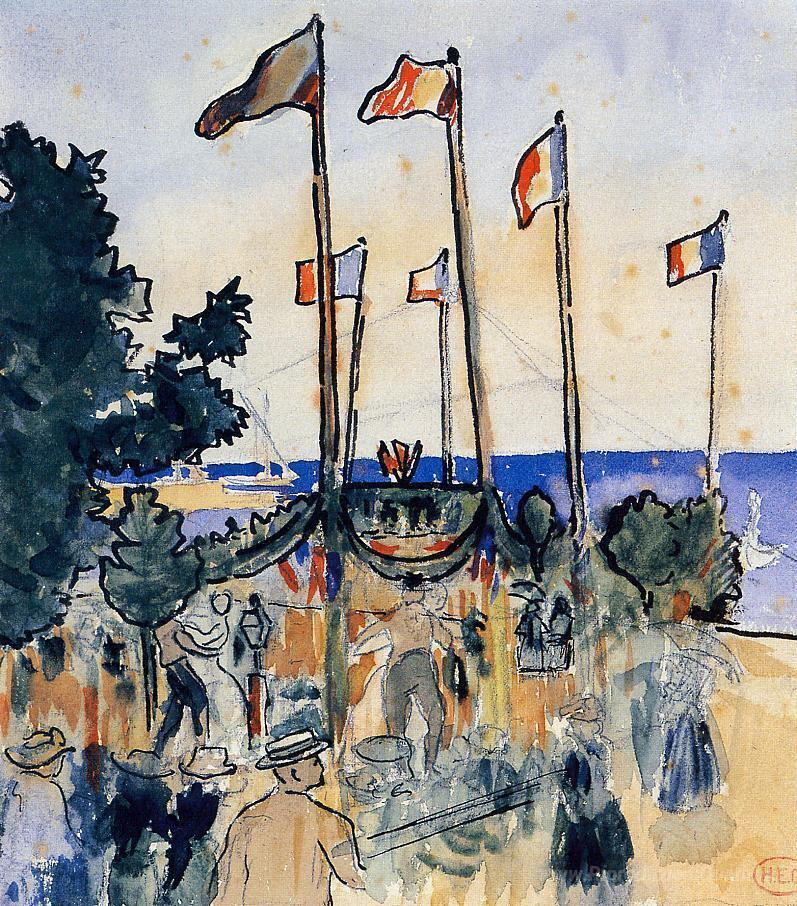 Scoprite la maestria di Henri-Edmond Cross, un pioniere del movimento neo-impressionista, attraverso il suo straordinario dipinto Il quattro di luglio by the Sea. Cross, con le sue tecniche innovative, utilizza la divisione del colore per creare atmosfere luminose e vibranti, che riflettono il calore del sole e l'armonia del paesaggio marino. Questo capolavoro non è solo un’opera d’arte, ma un’esperienza sensoriale che cattura l'essenza di una festa estiva lungo le coste italiane.