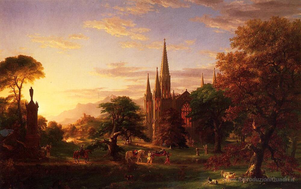 Ti offriamo una riproduzione artigianale su tela dell'opera famosa 'Il ritorno' di Thomas Cole, dal Museo delle Riproduzioni.