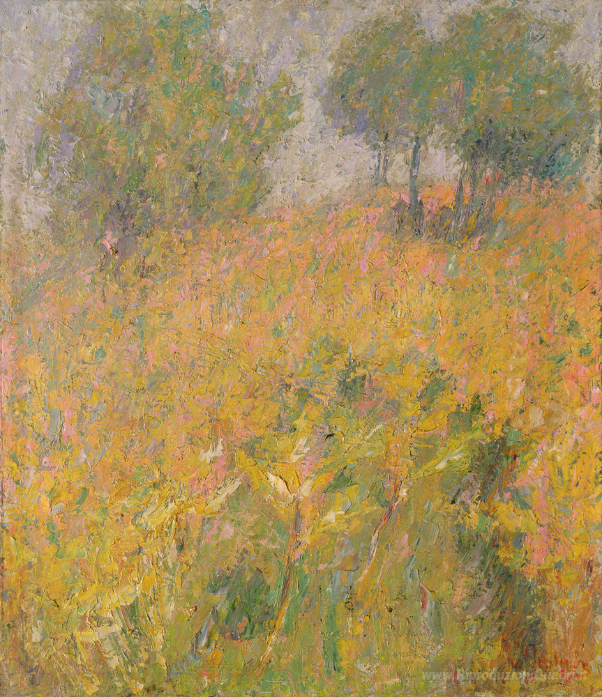 Ti offriamo una riproduzione artigianale su tela dell'opera famosa 'Il sole d'autunno' di Ivan Grohar, dal Museo delle Riproduzioni.