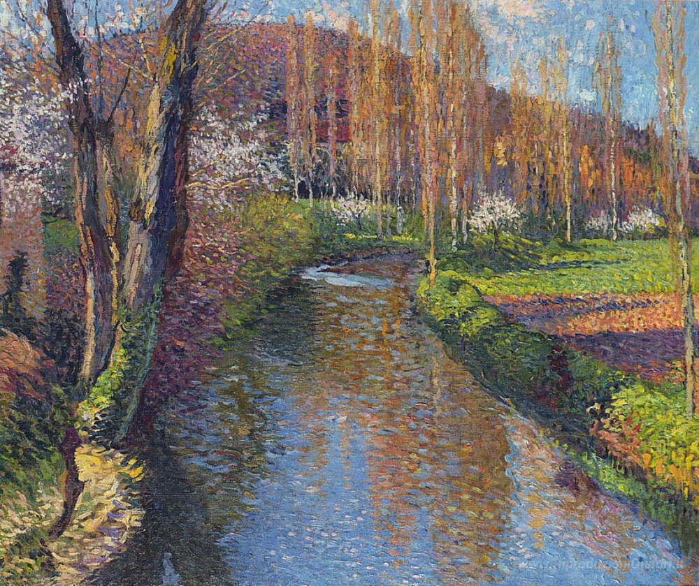 Ti offriamo una riproduzione artigianale su tela dell'opera famosa 'Il Vert' di Henri Martin, dal Museo delle Riproduzioni.