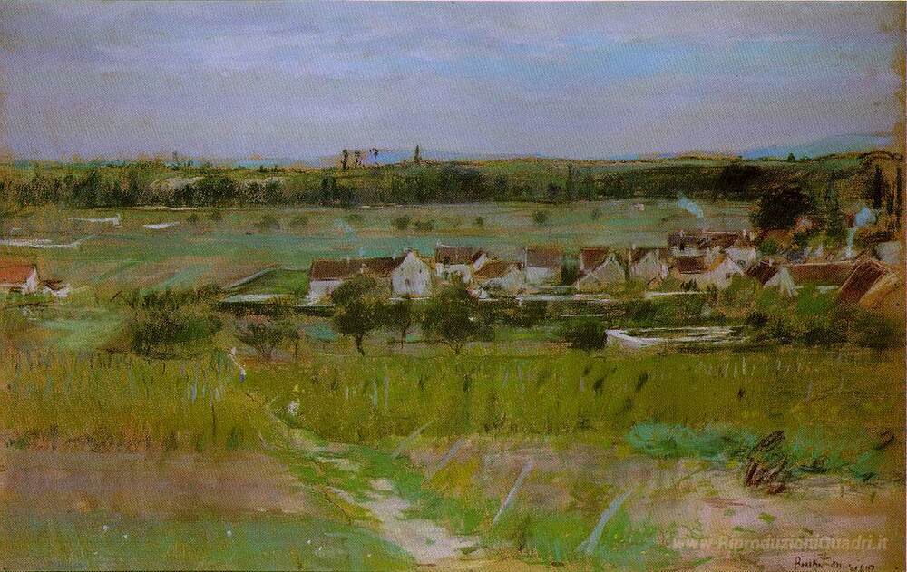 Ti offriamo una riproduzione artigianale su tela dell'opera famosa 'Il villaggio di Maurecourt' di Berthe Morisot, dal Museo delle Riproduzioni.