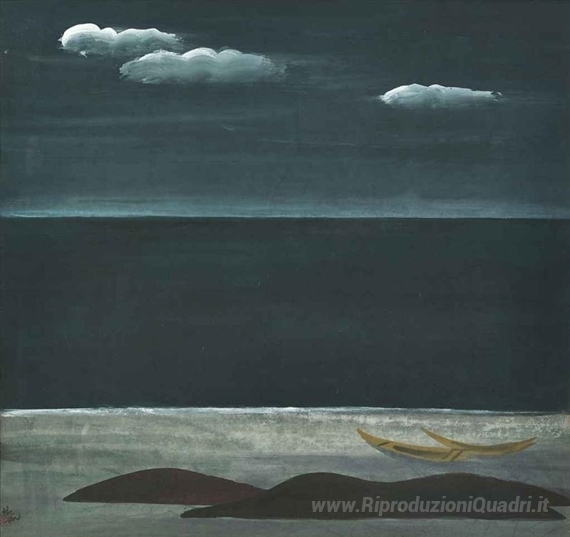 Ti offriamo una riproduzione artigianale su tela dell'opera famosa 'Imbarcazioni sul litorale' di Lin Fengmian, dal Museo delle Riproduzioni.