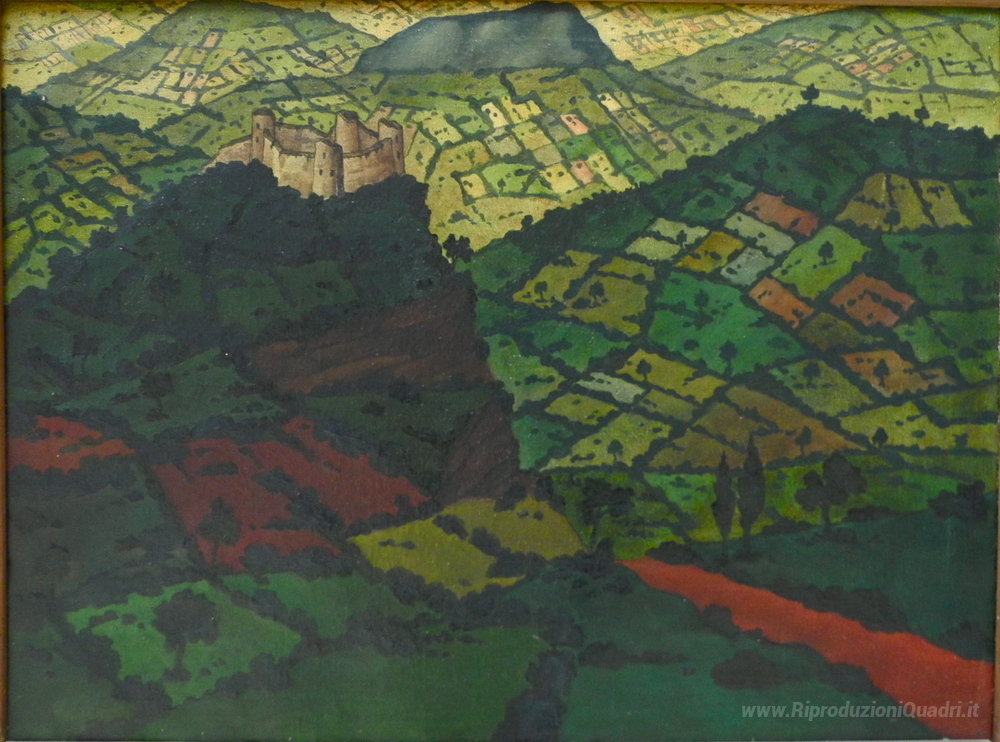 Ti offriamo una riproduzione artigianale su tela dell'opera famosa 'Imereti. Rosso strada' di David Kakabadze, dal Museo delle Riproduzioni.
