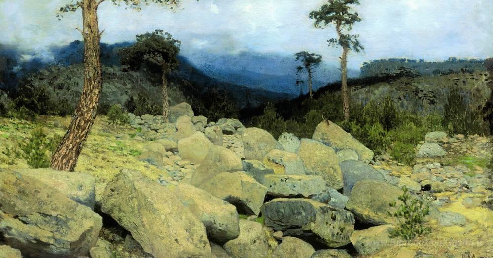 Ti offriamo una riproduzione artigianale su tela dell'opera famosa 'In montagna Crimea' di Isaac Levitan, dal Museo delle Riproduzioni.