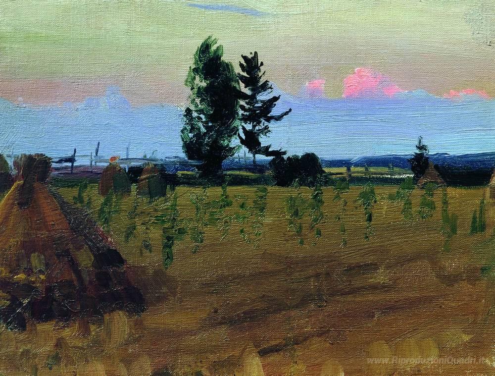 Ti offriamo una riproduzione artigianale su tela dell'opera famosa 'In Plyos' di Isaac Levitan, dal Museo delle Riproduzioni.