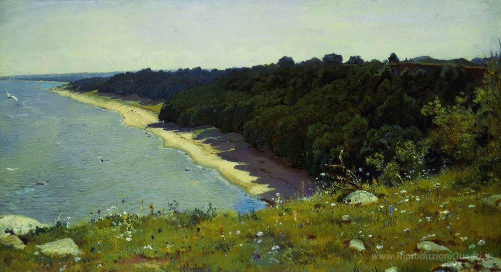 Ti offriamo una riproduzione artigianale su tela dell'opera famosa 'In riva al mare' di Ivan Shishkin, dal Museo delle Riproduzioni.