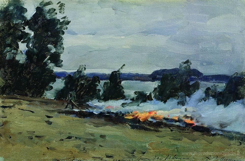 Ti offriamo una riproduzione artigianale su tela dell'opera famosa 'Incendi' di Isaac Levitan, dal Museo delle Riproduzioni.