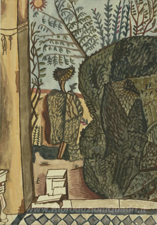 Ti offriamo una riproduzione artigianale su tela dell'opera famosa 'Ingresso di casa di campagna' di Yiannis Tsaroychis, dal Museo delle Riproduzioni.