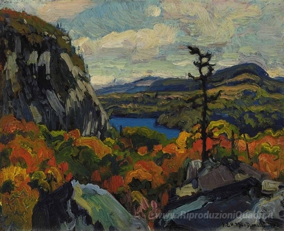 Ti offriamo una riproduzione artigianale su tela dell'opera famosa 'Inizio autunno, Montreal Fiume, Algoma' di J. E. H. MacDonald, dal Museo delle Riproduzioni.