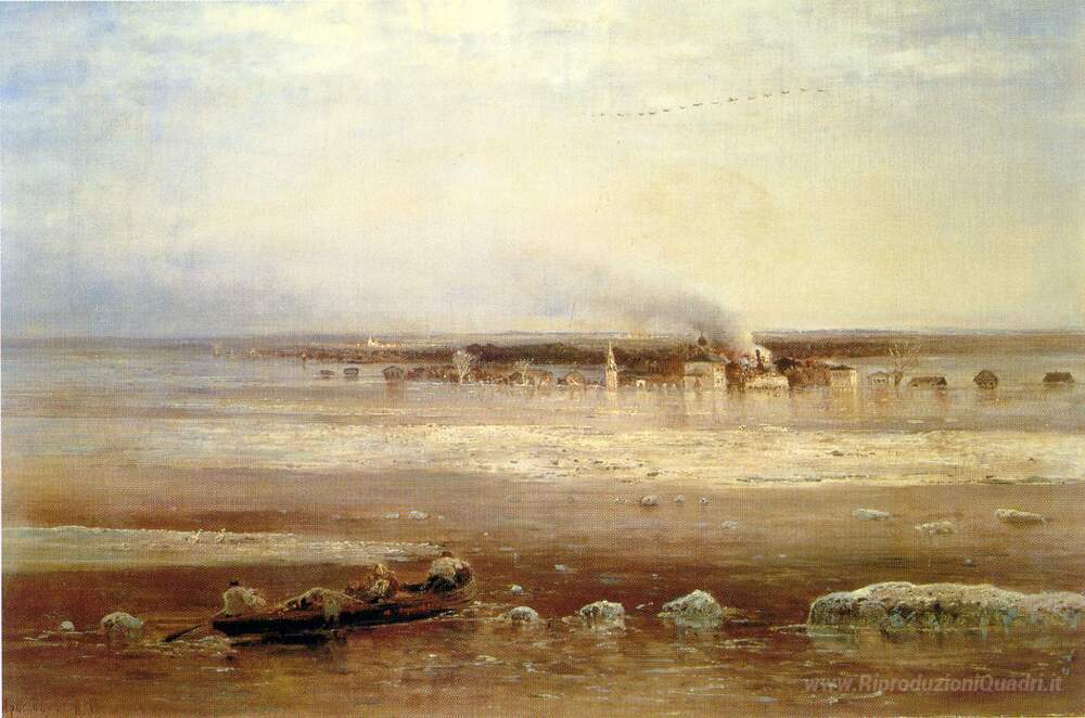 Scopri l'incanto della tradizione pittorica russa con il capolavoro Inondazioni del fiume Volga nei pressi di Yaroslavl, firmato dal maestro Aleksey Savrasov. Questo dipinto a olio, ogni pennellata impregnato di emozione, cattura la meraviglia della natura in un momento di trasformazione e di grande impatto visivo. Savrasov, noto per il suo stile romantico e realista, riesce a trasmettere la forza e la bellezza degli scenari naturali, trasformando la semplicità del paesaggio in arte sublimata.