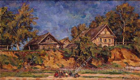 Ti offriamo una riproduzione artigianale su tela dell'opera famosa 'Insediamento Yurevskaya' di Pyotr Konchalovsky, dal Museo delle Riproduzioni.