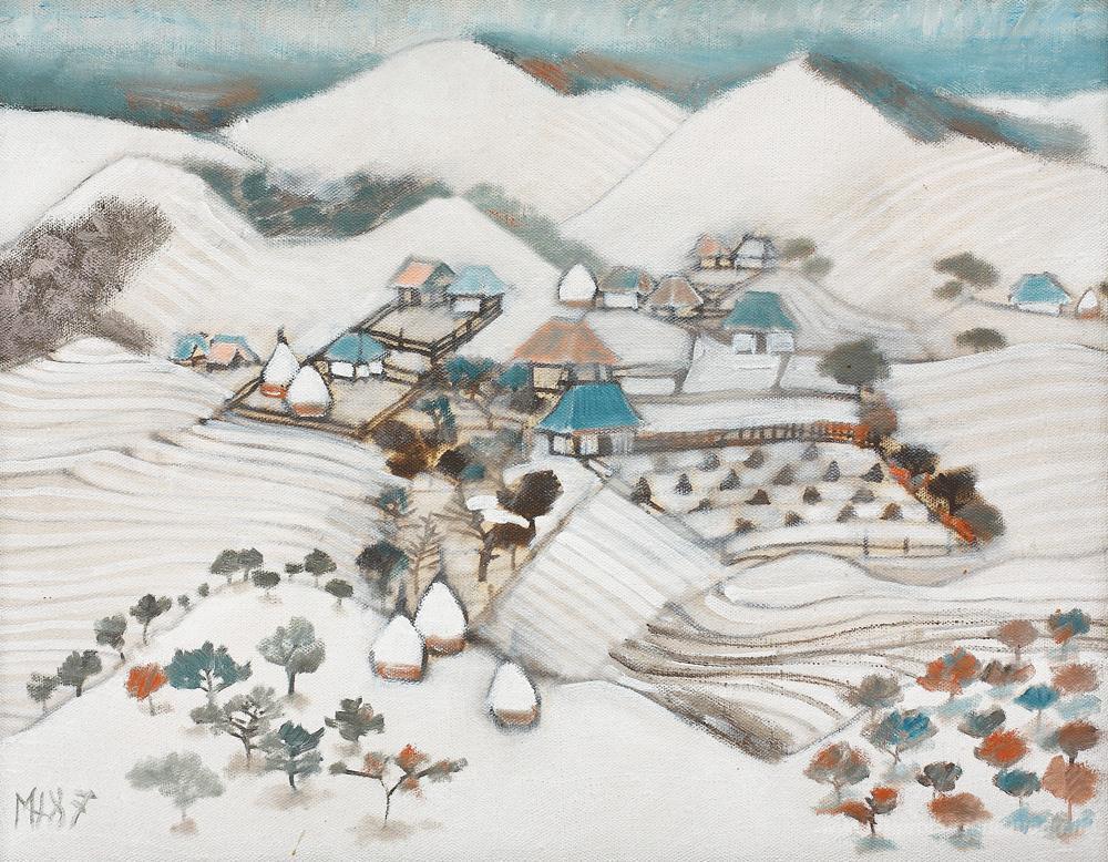 Ti offriamo una riproduzione artigianale su tela dell'opera famosa 'Inverno al Cenade' di Viorel Marginean, dal Museo delle Riproduzioni.