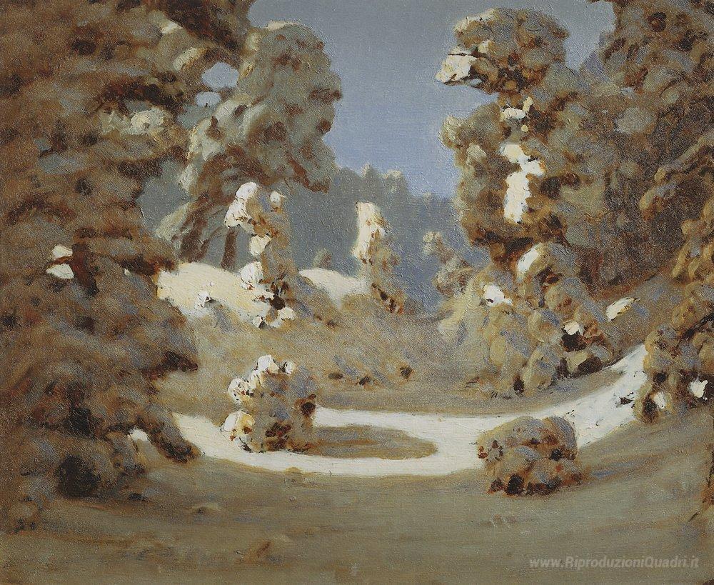 Scopri l'incantevole mondo dei dipinti a olio italiani, un viaggio artistico che unisce passione e maestria. In questa speciale selezione, ti presentiamo l'opera Inverno. La luce del sole su La brina, creata dal geniale artista Arkhip Kuindzhi. Questo dipinto eccelle per la sua eccezionale capacità di catturare la luce e l'atmosfera invernale, trasportando lo spettatore in un paesaggio magico e suggestivo.