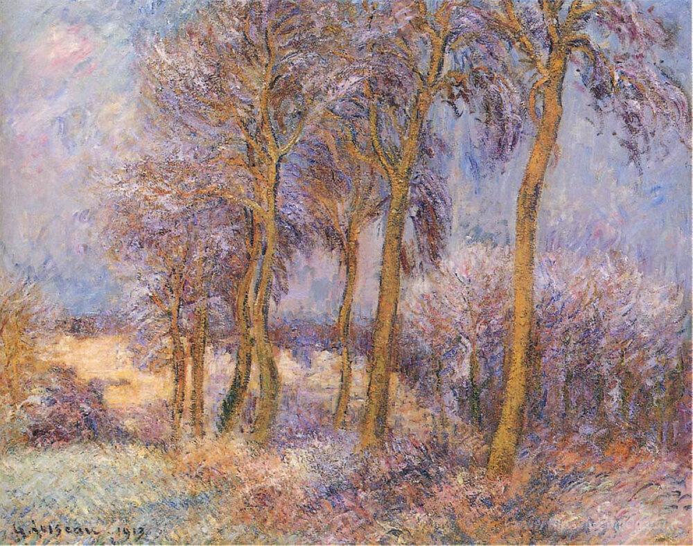 Ti offriamo una riproduzione artigianale su tela dell'opera famosa 'Inverno' di Gustave Loiseau, dal Museo delle Riproduzioni.