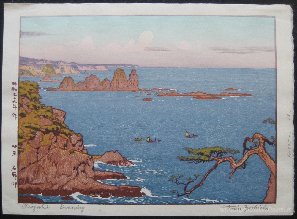 Ti offriamo una riproduzione artigianale su tela dell'opera famosa 'Irozaki, sera' di Toshi Yoshida, dal Museo delle Riproduzioni.