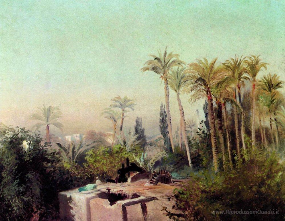 Ti offriamo una riproduzione artigianale su tela dell'opera famosa 'Irrigazione in Egitto' di Konstantin Makovsky, dal Museo delle Riproduzioni.