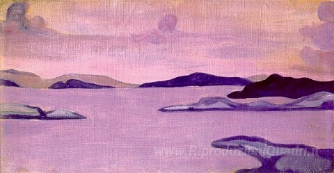 Ti offriamo una riproduzione artigianale su tela dell'opera famosa 'Isola' di Nicholas Roerich, dal Museo delle Riproduzioni.