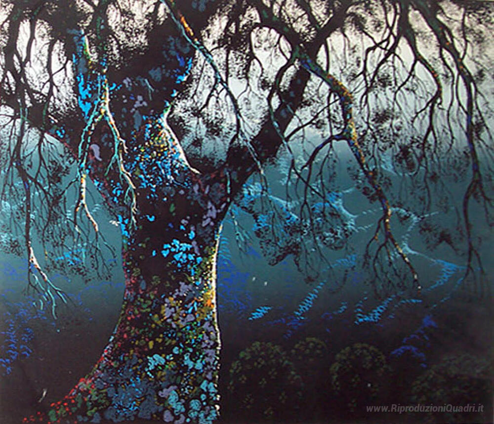 Ti offriamo una riproduzione artigianale su tela dell'opera famosa 'Jewel Albero' di Eyvind Earle, dal Museo delle Riproduzioni.