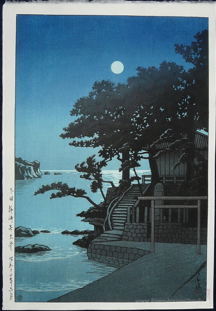 Ti offriamo una riproduzione artigianale su tela dell'opera famosa 'Kakizaki Bentendo Santuario di Shimoda' di Hasui Kawase, dal Museo delle Riproduzioni.