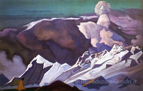 Ti offriamo una riproduzione artigianale su tela dell'opera famosa 'Kalki Avatar' di Nicholas Roerich, dal Museo delle Riproduzioni.