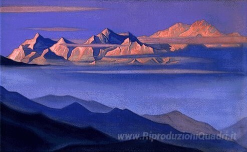 Ti offriamo una riproduzione artigianale su tela dell'opera famosa 'Kangchenjunga' di Nicholas Roerich, dal Museo delle Riproduzioni.