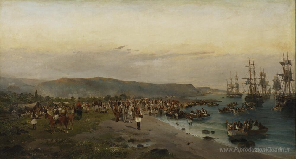 Ti offriamo una riproduzione artigianale su tela dell'opera famosa 'Karaiskakis, Faliro' di Konstantinos Volanakis, dal Museo delle Riproduzioni.