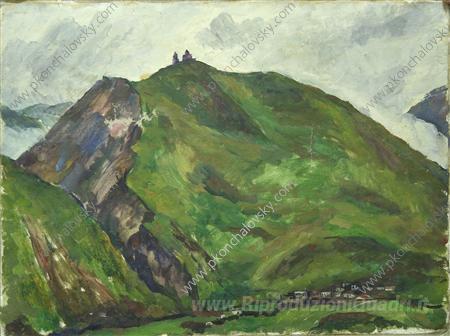 Ti offriamo una riproduzione artigianale su tela dell'opera famosa 'Kazbek. Gergeti.' di Pyotr Konchalovsky, dal Museo delle Riproduzioni.