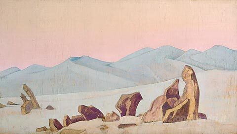 Ti offriamo una riproduzione artigianale su tela dell'opera famosa 'Kereksury' di Nicholas Roerich, dal Museo delle Riproduzioni.