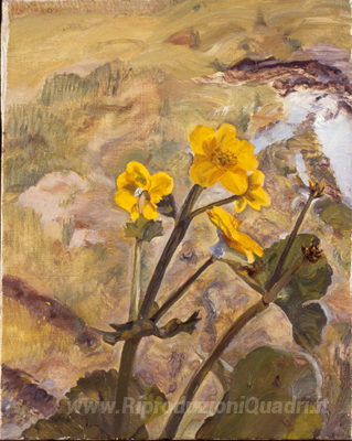 Ti offriamo una riproduzione artigianale su tela dell'opera famosa 'Kingcups Souvenir di Glen Artney' di Lucian Freud, dal Museo delle Riproduzioni.
