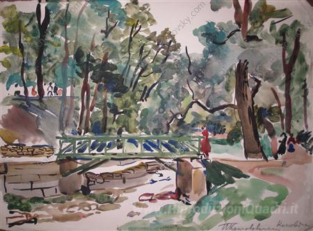 Questo dipinto, con la sua rappresentazione evocativa di un ponte immerso nel verde del parco, è perfetto per arricchire gli spazi della vostra casa, donando un senso di tranquillità e armonia. La maestria di Konchalovsky nell'uso dei colori e delle texture permette di apprezzare ogni sfumatura, trasformando ogni ambiente in un'opera d'arte che stimola la riflessione e l’ispirazione.