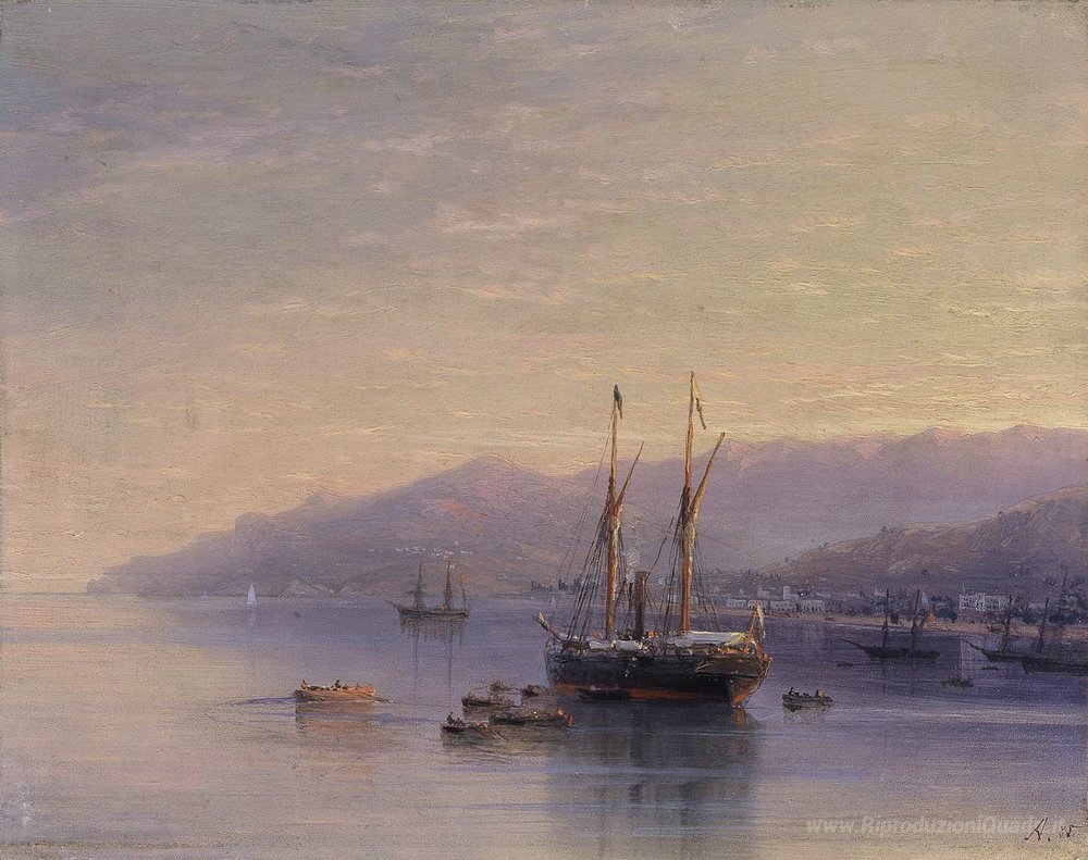 Ti offriamo una riproduzione artigianale su tela dell'opera famosa 'La Baia di Yalta' di Ivan Aivazovsky, dal Museo delle Riproduzioni.