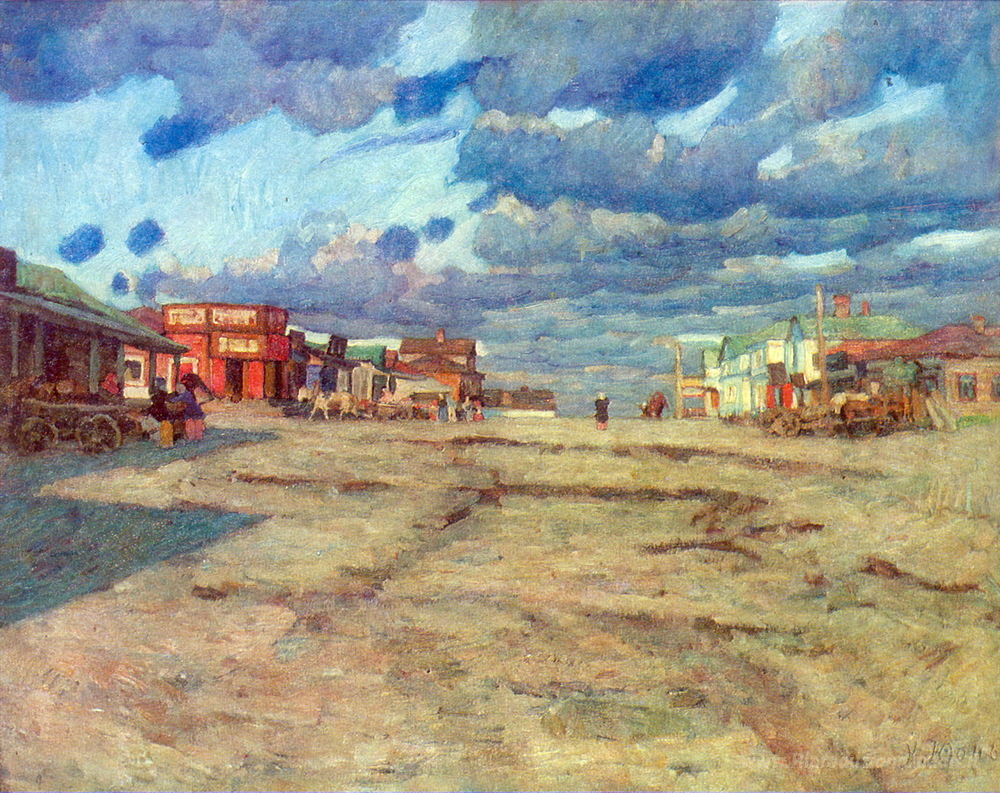 Ti offriamo una riproduzione artigianale su tela dell'opera famosa 'La Città Voskresensk' di Konstantin Yuon, dal Museo delle Riproduzioni.