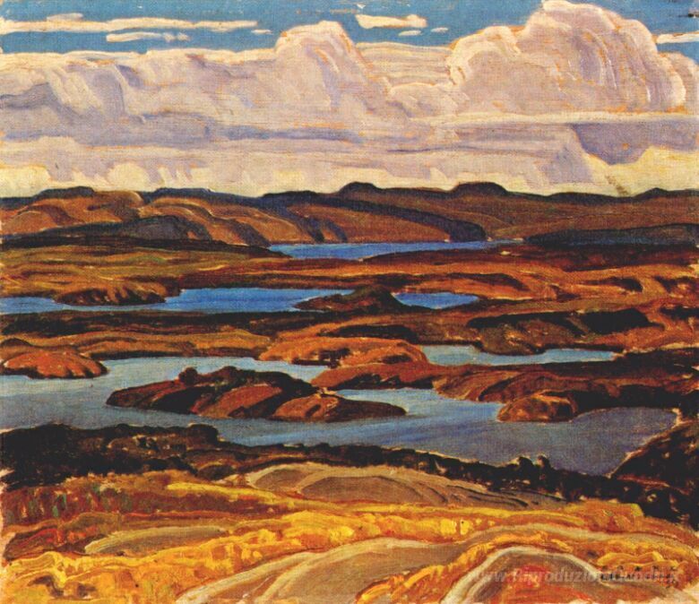 Ti offriamo una riproduzione artigianale su tela dell'opera famosa 'La Cloche Panorama' di Franklin Carmichael, dal Museo delle Riproduzioni.